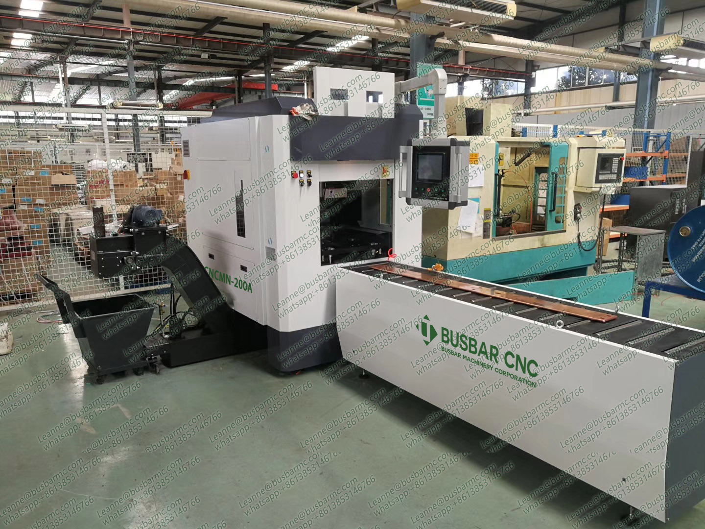 Máy Phay Thanh Cái CNC Hai Đầu CNCDMN-200A chuyên dùng để gia công thanh cái đồng và nhôm, thực hiện phay đầu, bo mép, tạo góc chính xác. Hệ thống CNC 5 trục với màn hình LCD 10.4", tốc độ trục chính tối đa 6000 r/min, công suất động cơ chính 3.7 KW, xử lý thanh cái dài 150-6000mm, rộng 30-200mm, dày 4-16mm, phù hợp cho sản xuất công nghiệp điện, tủ điện, thiết bị điện.